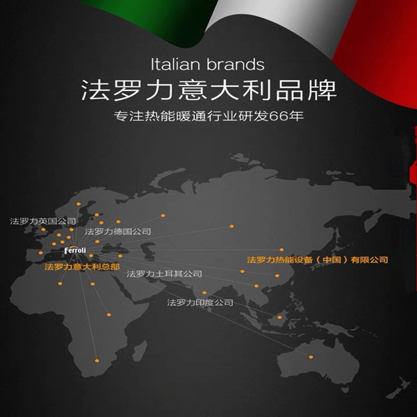 近半个世纪,法罗力(FERROLI)集团专心致力于热能领域,坚持不懈地开发高效、安全、环保、节能的供暖设备,把丰富经验和知识转化到设计和开发当中,拥有*的供热技术。公司开发了全系列的供暖设备,包括热水器、散热器、壁挂锅炉、铸铁锅炉、钢制热水锅炉、钢制蒸汽锅炉及家庭卫浴产品等。由于在热能领域的杰出表现,法罗力(FERROLI)集团获得享誉欧洲的暖通奖和*成就奖(欧洲采暖和环保工程师协会颁发)。公司通过了荷兰GASTEC严格把关的ISO9001质量体系认证,所有产品都获得了欧洲CE认证,并且通过了英国、法国、德国、荷兰及中国等*的权威认证。